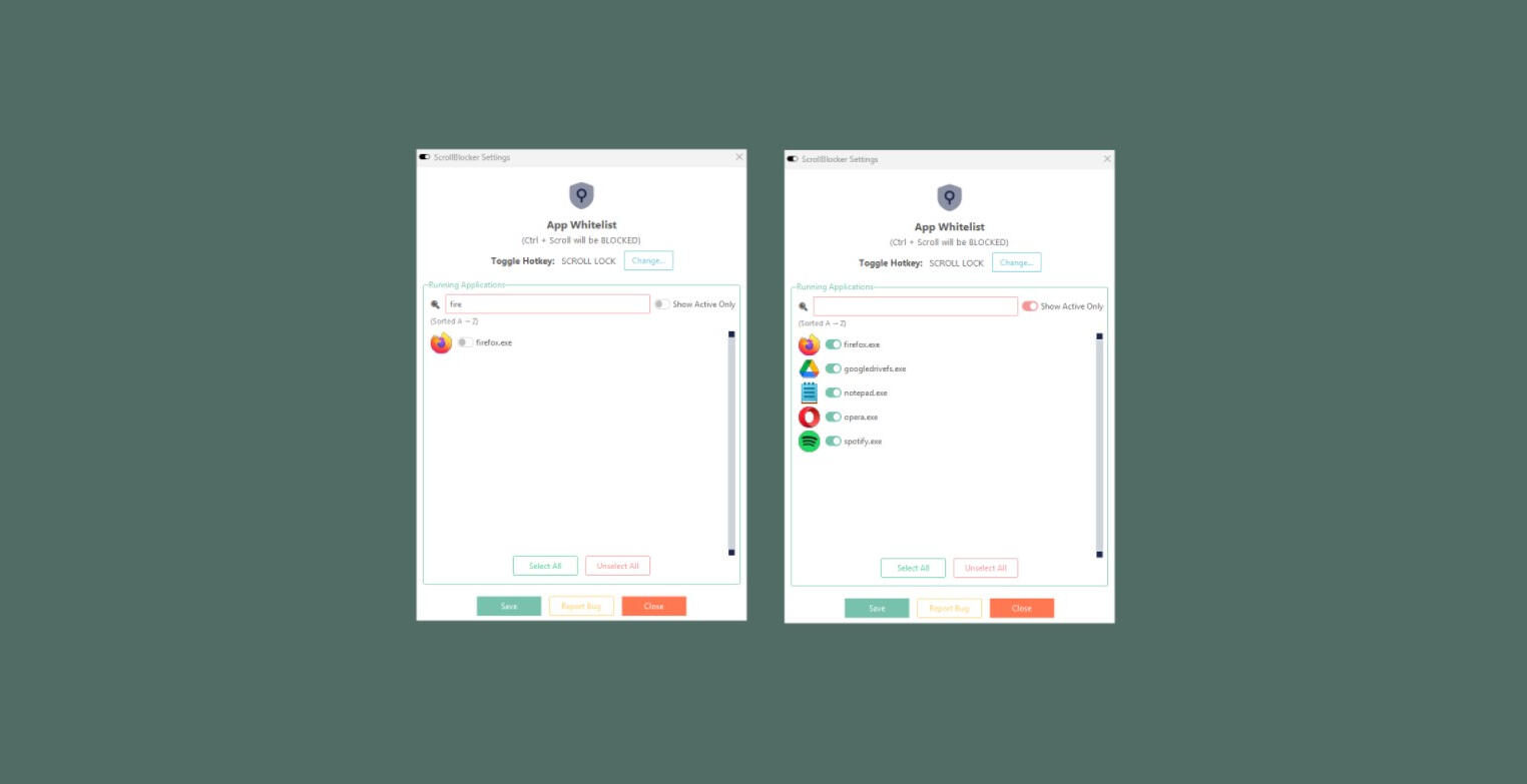 ScrollBlocker runs quietly in your tray. Just pick the apps where you want to disable mouse-wheel zooming, and you're done. No more misfires while working or gaming.